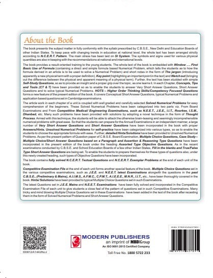 About:-The book presents the subject matter in fully conformity with the syllabi prescribed by C.B.S.E., New Delhi and Education Boards of other Indian States. To keep pace with changing trends in education at national level, the whole text has been arranged strictly according to . The main stress has been laid on . The symbols and signs used for various physical quantities are also in keeping with the recommendations at national and international levels. The book provides a result-oriented training to the young students. The whole text of the book is embedded with Window First Basic Use of Formula (containing a direct and simple formula based Numerical Problem, which tells the students as to how the formula derived in an article is to be used to solve a Numerical Problem) and short notes in the form of (introducing apparently a new physical term with a proper definition), (highlighting an important point in the text) and (bringing out the difference between the physical and apparent meaning of a physical term). Further, the text has been studded with simple Self-Study Questions, so as to provide an insight and a proper grip over the topic, as one learns it. In each Chapter, Concepts, Tips and Tools (CT & T) have been provided so as to enable the students to answer Very Short Answer Questions, Short Answer Questions and to solve typical Numerical Problems. HOTS – Higher Order Thinking Skills/Competency Focused Questions forms a new feature of the present edition of the book. It covers Conceptual Short Answer Questions, typical Numerical Problems and application based questions set in Cambridge examinations.