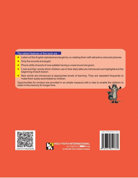 • Letters of the English alphabet are taught by co-relating them with attractive colored pictures.