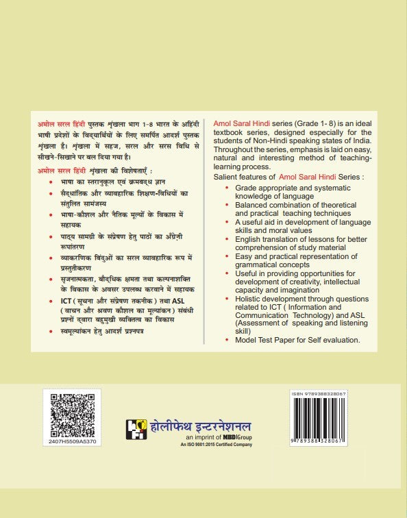 Amol Saral Hindi series (Grade 1- 8) is an ideal textbook series, designed especially for the students of Non-Hindi speaking states of India. Throughout the series, emphasis is laid on easy, natural and interesting method of teaching learning process. Salient features of Amol Saral Hindi Series :