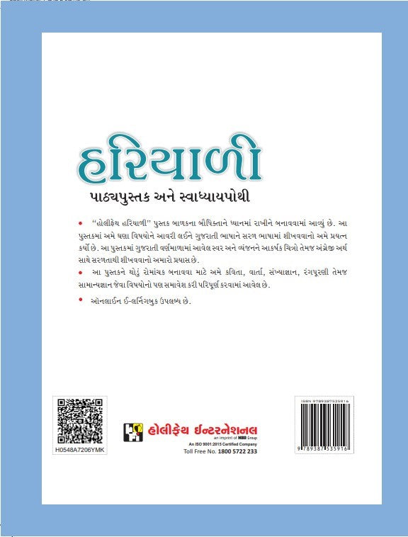About:- We know that children should be kept connected to school life and practical life and their minds should be inculcated with a little exploration and a curiosity to find out new things by themselves. Keeping this principle in mind, we have prepared a book named Hariyali for classes 1 to 8. Through this book, our attempt is to reduce the gap between the child's home and school and to inspire them to develop a little curiosity and explore new things. While preparing this book, the selection of lessons has been done keeping in mind the intellectual capacity and language level of the children. Also, the sequence of the lessons has been kept easy. The pictures given in the lesson and the self-study and exploration time will attract the children and through it they will definitely gain message and new knowledge. Our book is full of culture, arts and folk arts and moral knowledge. This is our effort to connect children with our culture and moral knowledge, so we have given culture and moral knowledge a proper place. Our aim is to teach the little ones to learn Gujarati language and to learn new things through exploration. This new book Hariyali is before you in its simple and easy form.