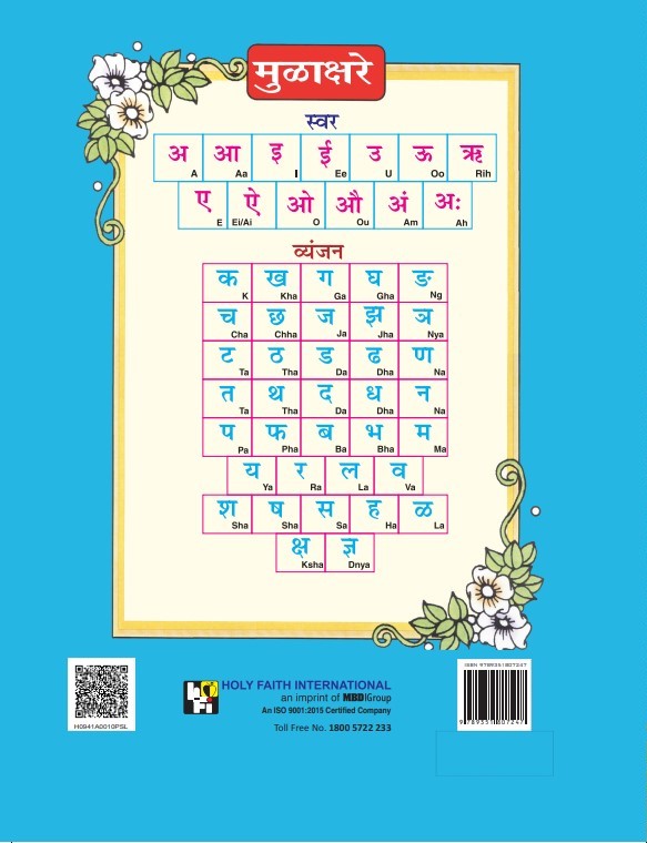 About the books :- In this workbook Marathi alphabets are given with beautiful pictures to help you recognize and write Marathi letters. There is plenty of space under the picture for your practice. With this practice you will definitely be able to recognize and right Marathi letters.