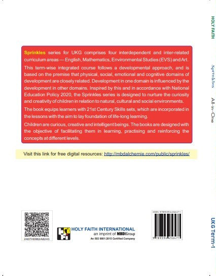 Sprinkles series for UKG comprises four interdependent and inter-related curriculum areas- English, Mathematics, Environmental Studies (EVS) and Art. This term-wise integrated course follows a developmental approach, and is based on...