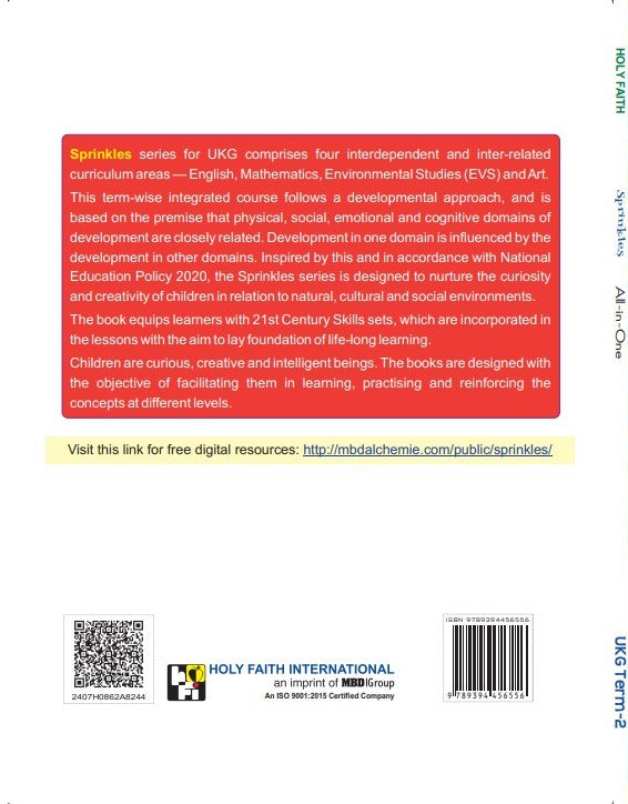 Sprinkles series for UKG comprises four interdependent and inter-related curriculum areas- English, Mathematics, Environmental Studies (EVS) and Art. This term-wise integrated course follows a developmental approach, and is based on...