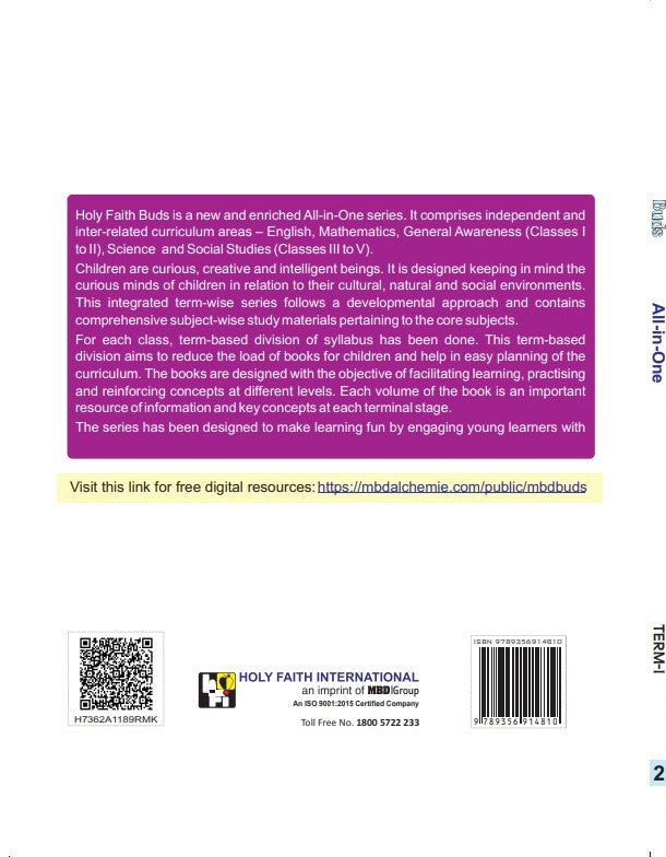 Holy Faith Buds is a new and enriched All-in-One series. It comprises independent and inter-related curriculum areas - English, Mathematics, General Awareness (Classes I to II), Science and Social Studies (Classes III to V).