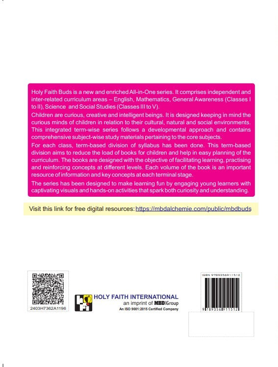 Holy Faith Buds is a new and enriched All-in-One series. It comprises independent and inter-related curriculum areas - English, Mathematics, General Awareness (Classes I to II), Science and Social Studies...