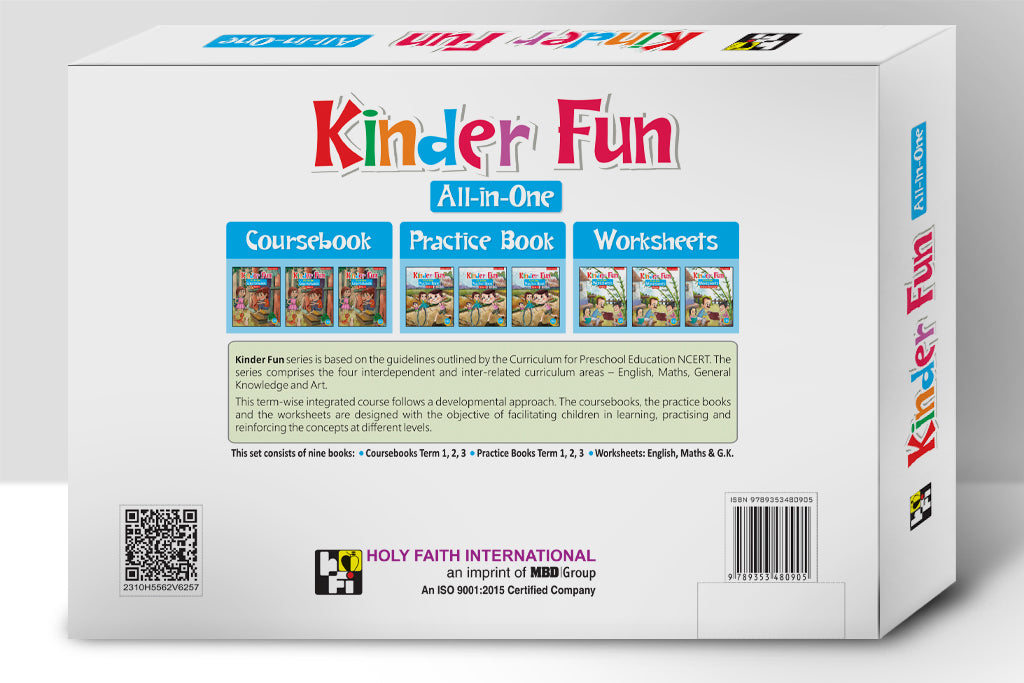 Kinder Fun series is based on the guidelines outlined by the Curriculum for Preschool Education NCERT. The series comprises the four interdependent and inter-related curriculum areas - English, Math, General Knowledge and Art.